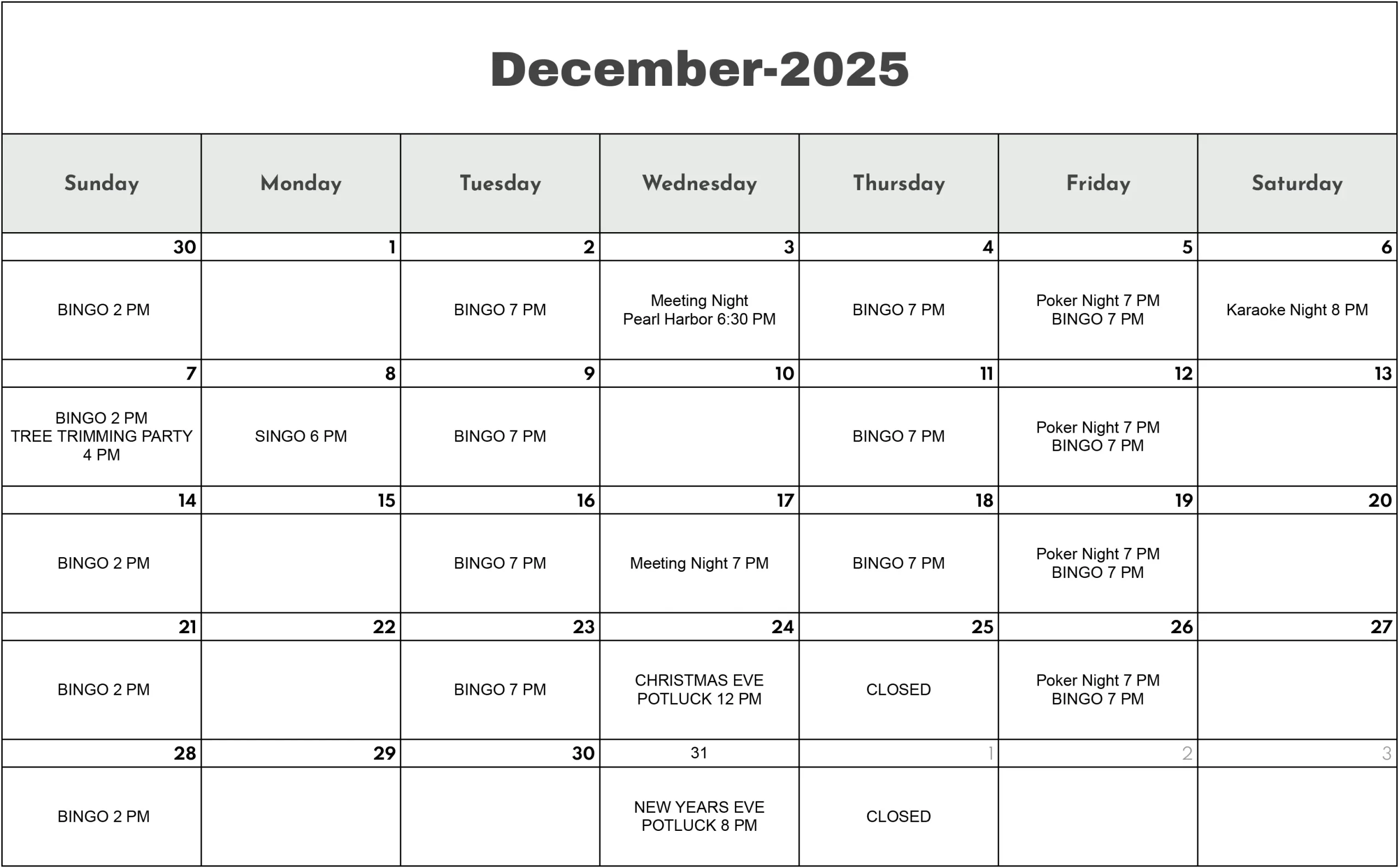 Pearl Harbor Remembrance Ceremony – Open to the public. We’ll be showing the hit movie Pearl Harbor after the ceremony.